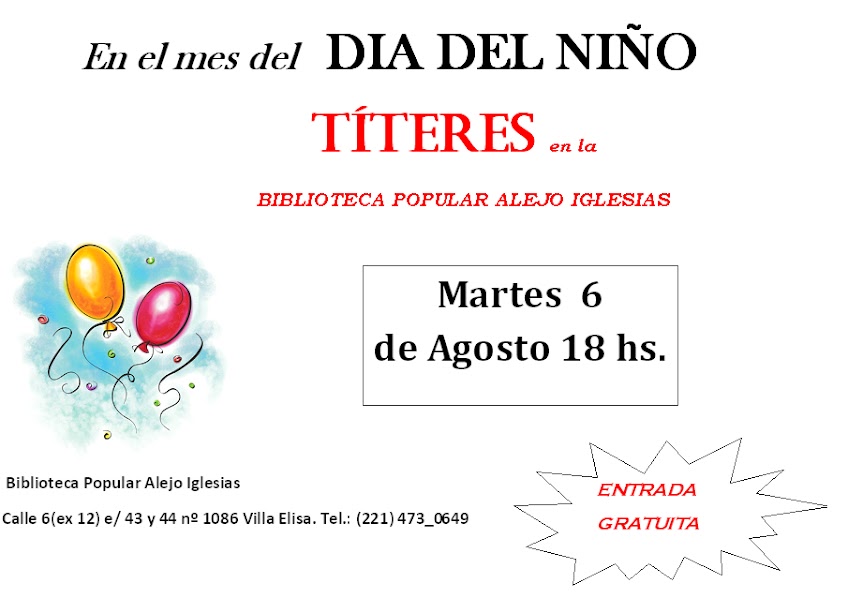 Títeres en la Biblioteca de Villa Elisa por el mes del Día del Niño