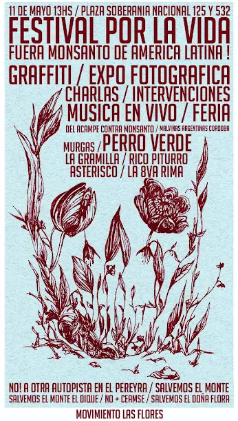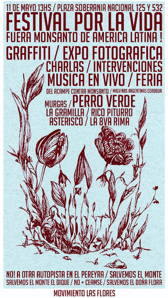 ESTE DOMINGO 11 DE MAYO FESTIVAL CONTRA MONSANTO Y TODAS LAS MULTINACIONALES QUE NOS VIENEN A SAQUEAR DESDE EL ACAMPE CONTRA MALVINAS, SOFIA GATICA Y PERRO VERDE - FUERA MONSANTO DE AMERICA LATINA !